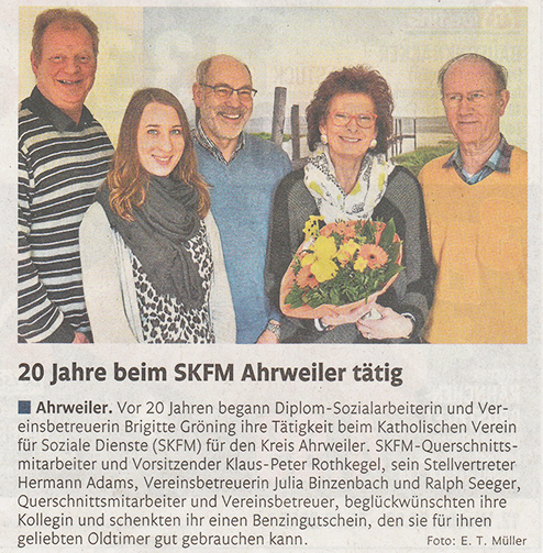 Dienstjubiläum 20 Jahre / Frau Brigitte Gröning / Rheinzeitung - 23.03.2017